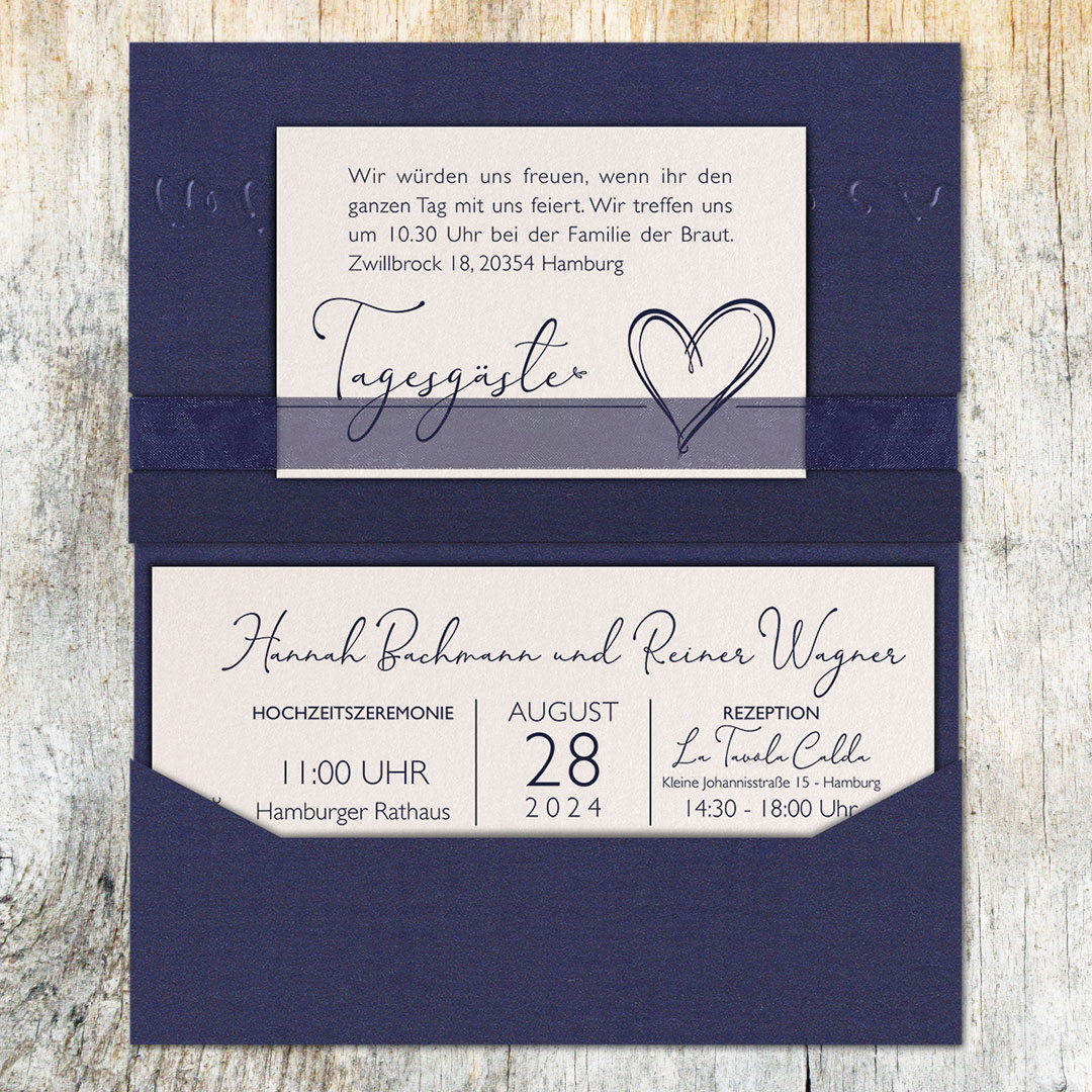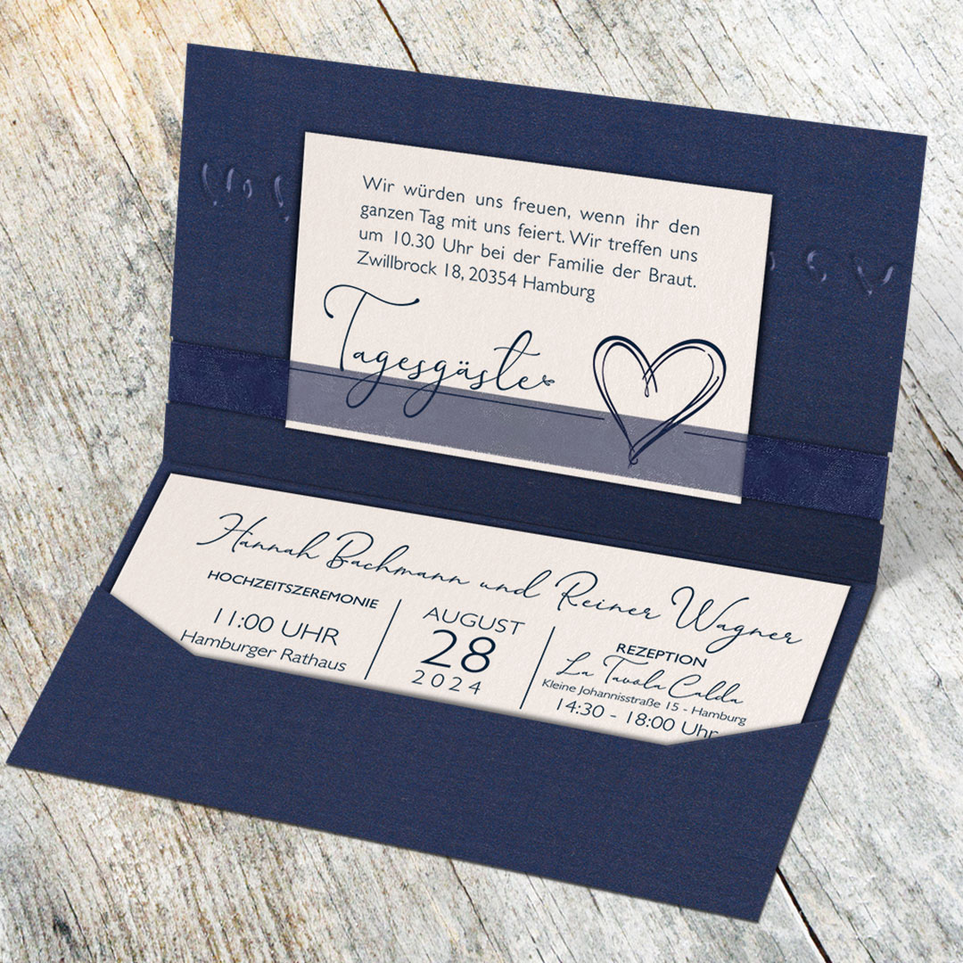 Hochzeitseinladungen | Blau | Pocketfold | hochzeitseinladungen-druck-und-mehr.de