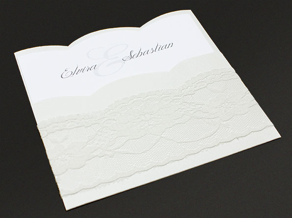 Elegante weiße Hochzeitseinladungen mit Spitze