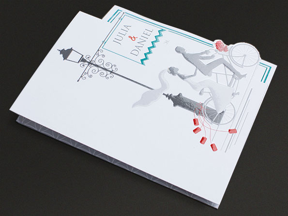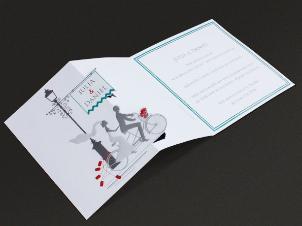 Originelle Hochzeitseinladungen – Brautpaar mit Tandem
