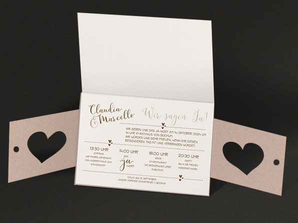 Entscheidet Euch jetzt für diese romantischen Hochzeitseinladungen und lasst Eure Einladungstexte von Profis passend zur Karte gestalten!